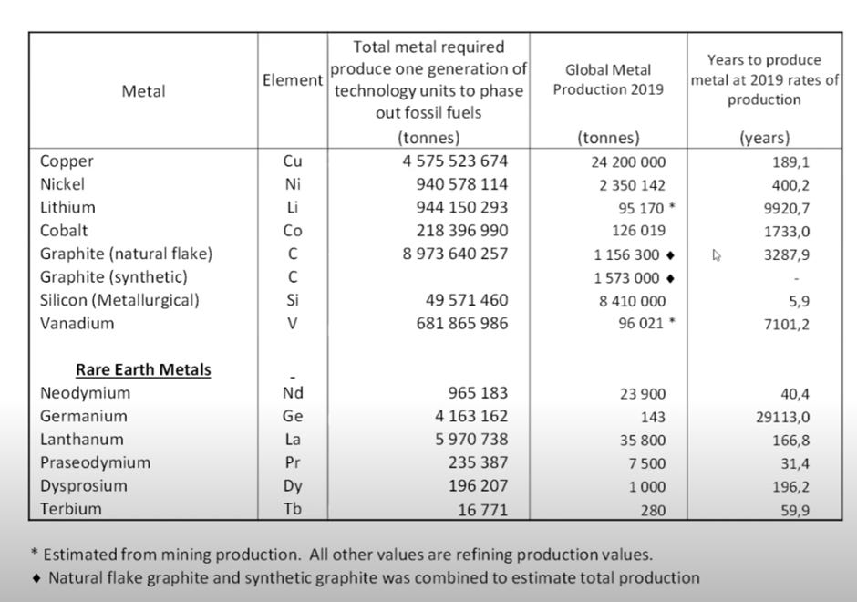 Some argue his analysis doesn't anticipate technological developments, such as improvements in storage capacity and sodium batteries, that reduce metals requirements. (Note: the potential for cheaper, more effective future technological advances has long been an excuse for doing nothing to mitigate our predicament.) Still, Michaux highlights a major challenge to the feasibility and expediency of the transition, given what we can do today.